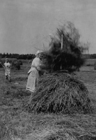 Tyra och Ragnhild Audas störar hö