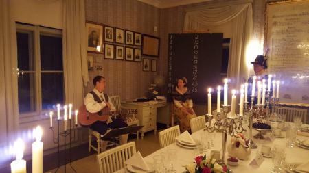 Historisk middag "Invigning av Tottesunds herrgård anno 1800" med Carl Mikael Bellman, Ulla Vinblad och Gustaf Strengberg.