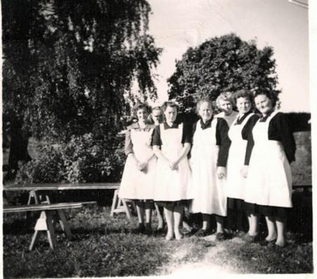 Tottesunds Marthaförening. Fr v Svea Kalander, Ester Härus, Edit Backlund, Maria Nykvist, Gun-Maj Backlund, Ester Vikman, Jenny Nykvist.