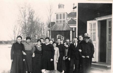 Folksamling utanför kyrkan