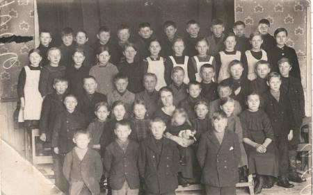 Femte raden nerifrån från vänster: Agnes Heir, Gerda Lundberg,?, Hilma Sundell, Vera Lindell, Ester Hjort, Alda Karlsson, Ester Sundell, ?, Anna Kalander (g. Kotka), Berta Aaltonen.