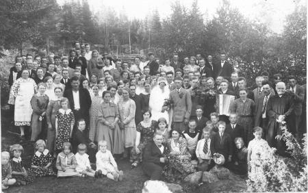 Bl.a Karl, Tyra, Alvar och Valter Audas saknas från fotot, pga att de var hemma och mjölkade korna när det togs. De återvände till festen efter mjölkningen.