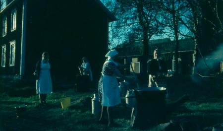 När det var kalas i byn ställde byns kvinnor upp på talko och kokade mat och kaffe. Här hos Enok och Valborg Furunäs.