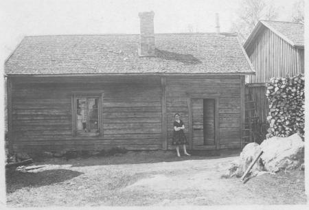Utanför står lärarinnan Alma Hagman (senare Nygård).