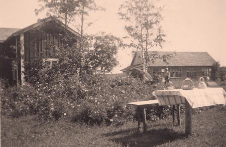 Kaffebordet dukat hos Berg. I bakgrundens ”likhuset” där Albert Berg handlade med kistor. Foto taget 1942